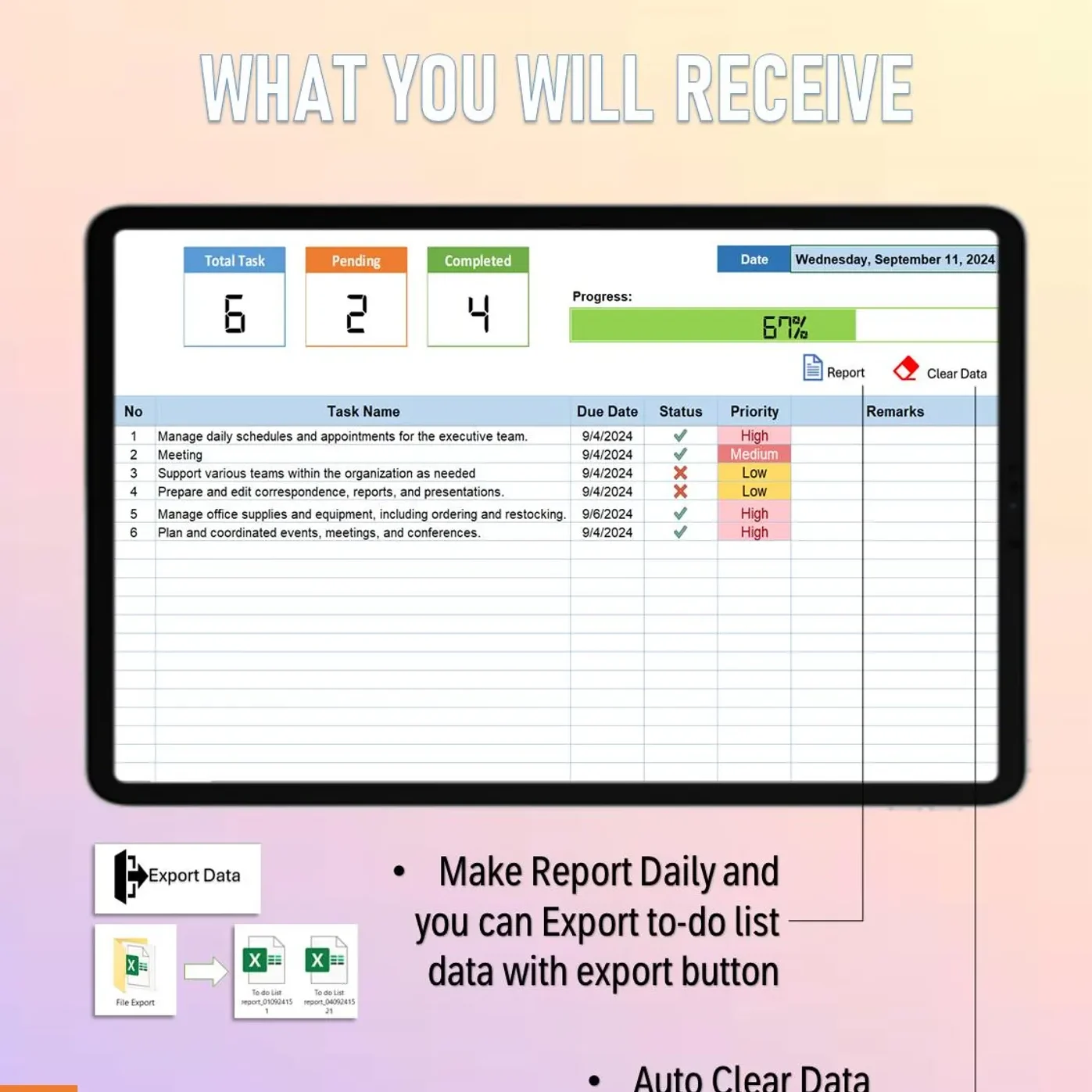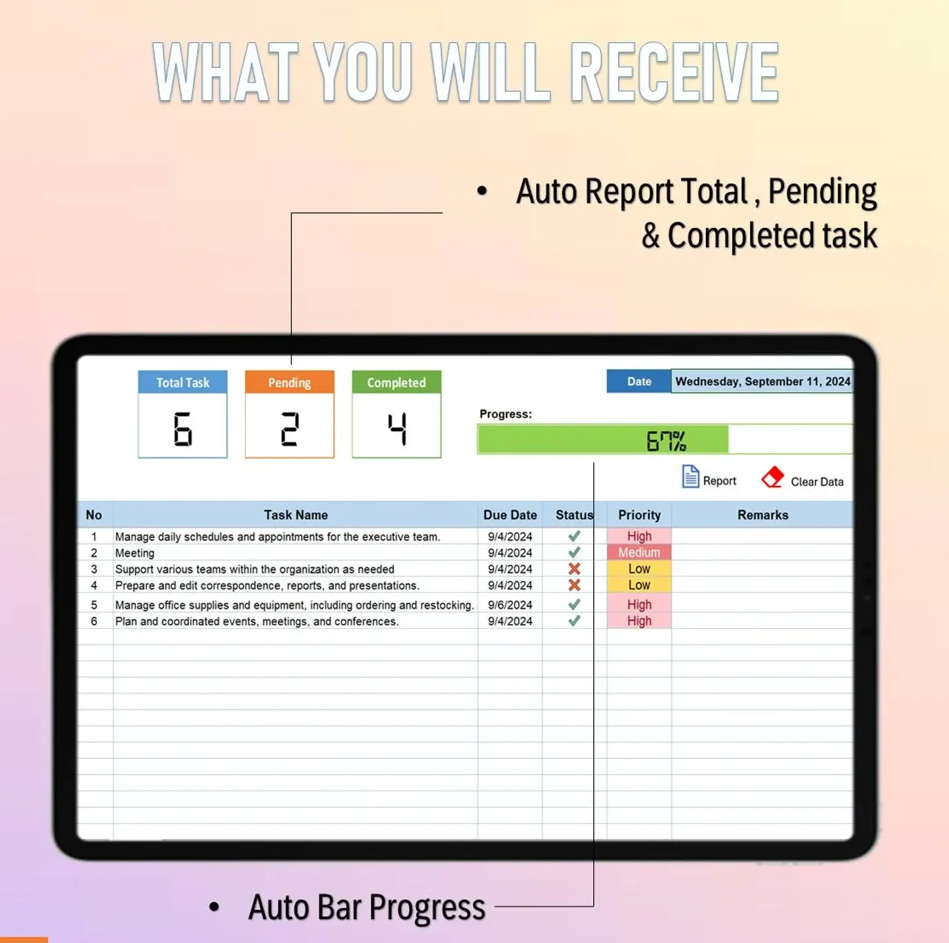 Macro Functionality (Optional) – Automate task updates and progress tracking with ease.